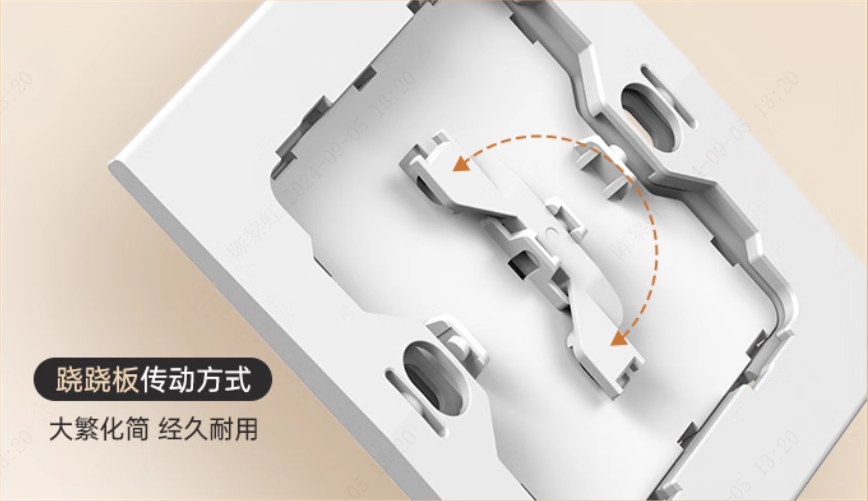 日常使用頻率很高的開關(guān)插座,細(xì)節(jié)的設(shè)計(jì)會影響使用感、體驗(yàn)感,從而影響生活品質(zhì)和心情。正泰X5開關(guān)創(chuàng)新傳動方式,“蹺蹺板”傳動化簡為繁,加持不到3°的小擺角設(shè)計(jì),開合手感輕巧,聲音小而清脆。開/關(guān)只需輕輕一按,通過4萬次按壓檢測,經(jīng)久耐用。